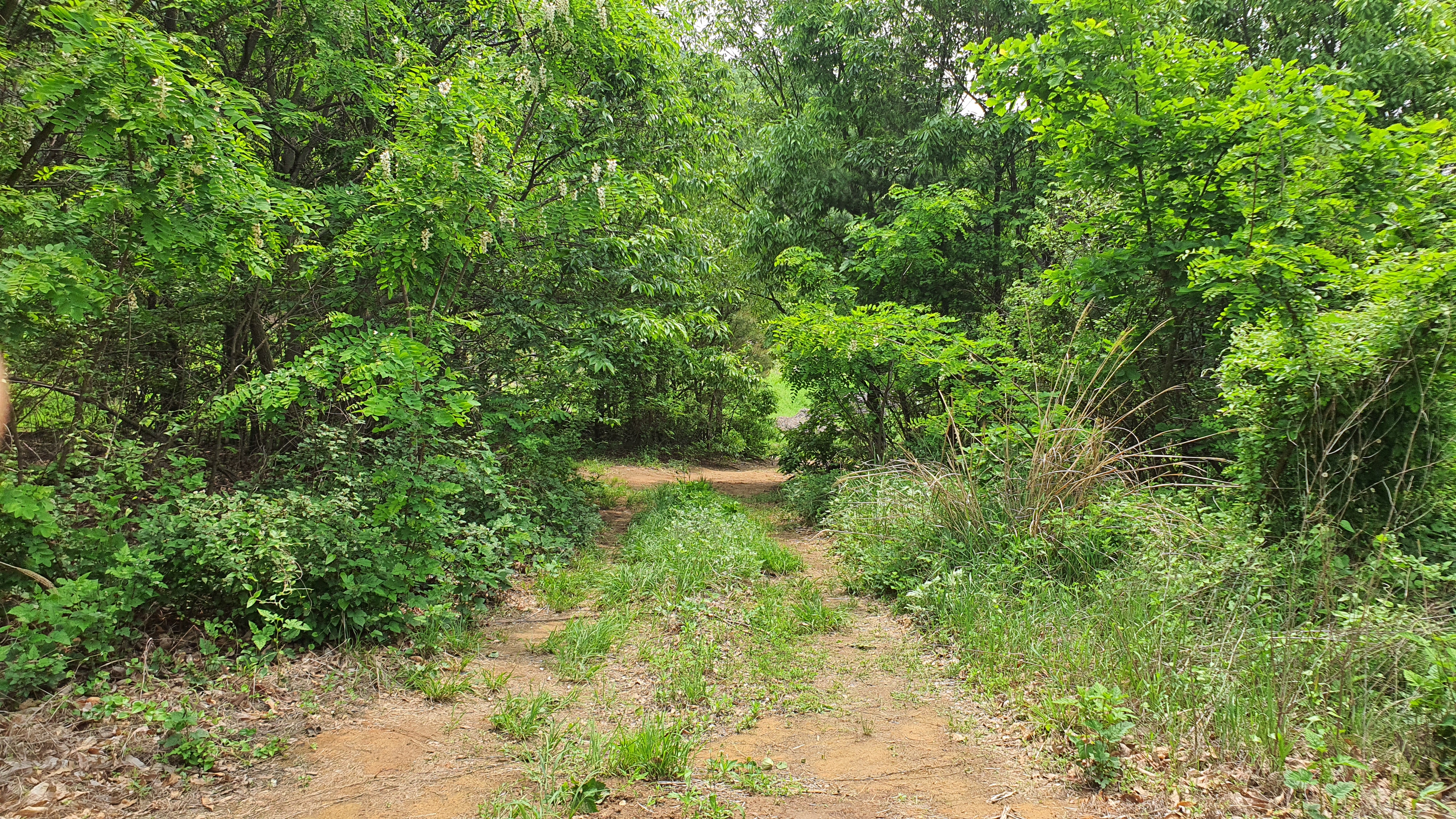 산속에서 넓은 공터가 있어요.