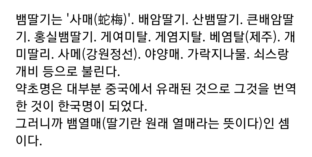 1. 딸기 열매를 사람이 먹지 않고 뱀이 먹어서 붙여진 명칭